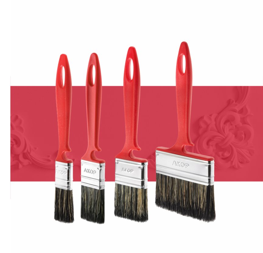 Кисти плоские для эмалей, ширина 25–100 мм, толщина 10–12 мм, двухкомпонентная ручка