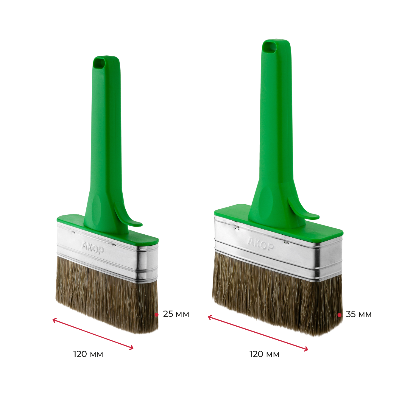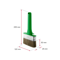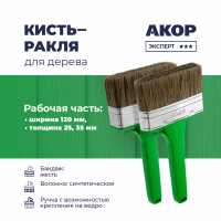 Ширина 120 мм, толщина 25 и 35 мм, синтетическое волокно с кончиком в форме конуса. Более плотная набивка и специальная форма клиньев разработаны для современных составов лазурей, пропиток и красок по дереву. Данные кисти отлично работают с неровными поверхностями, с глубокими порами дерева.