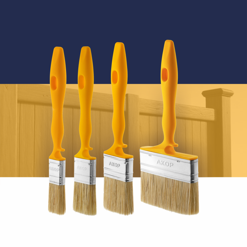 Кисти плоские для дерева, ширина 25–100 мм, толщина 10–12 мм, двухкомпонентная ручка