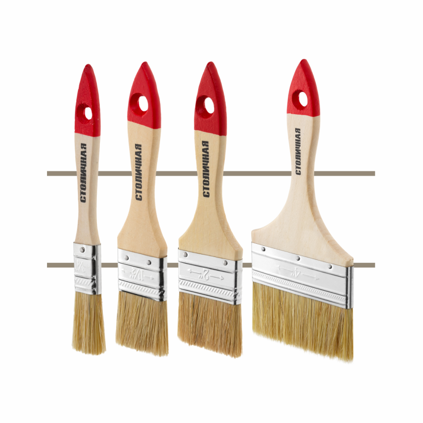 Кисти плоские универсальные, ширина щетины 25–100 мм, толщина 11–18 мм, деревянная ручка, Столичная