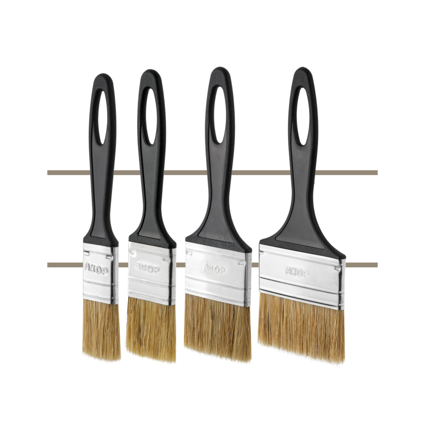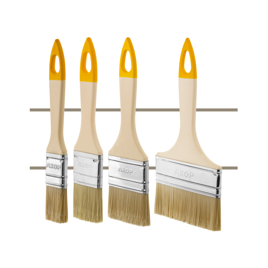 Кисти плоские универсальные, ширина щетины 25–70 мм, толщина 10–12 мм, удлиненная ручка