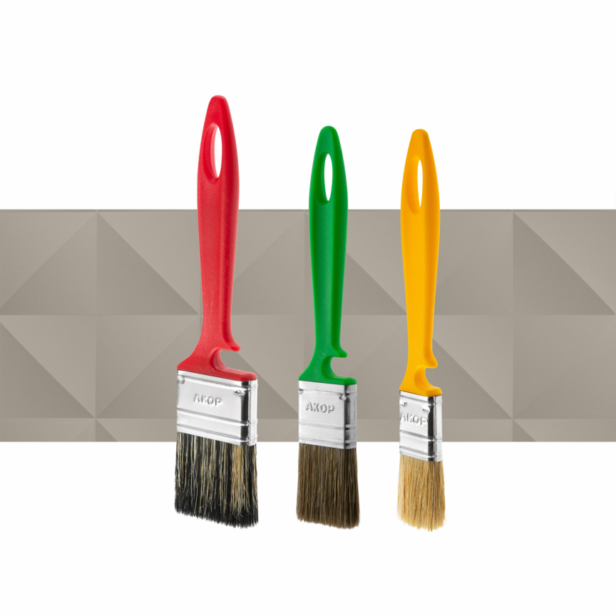 Кисти плоские универсальные, ширина 25–70 мм, толщина 10–12 мм, удлиненная ручка