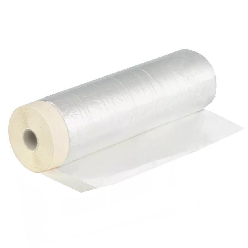 Пленка защитная, прозрачная, с клейкой лентой, длина 15, 20 и 25 м, ширина 0,55-3,5 м, толщина 7 мкм