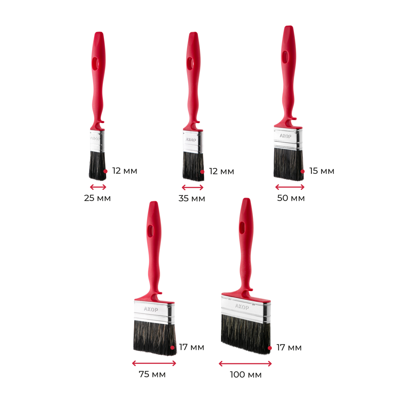 Кисти плоские для водных красок, ширина 25–100 мм, толщина 12–17 мм