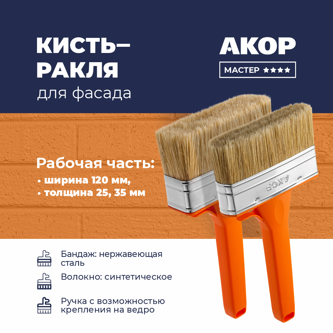 Кисти-ракли для фасада, толщина 25 и 35 мм, ширина 120 мм