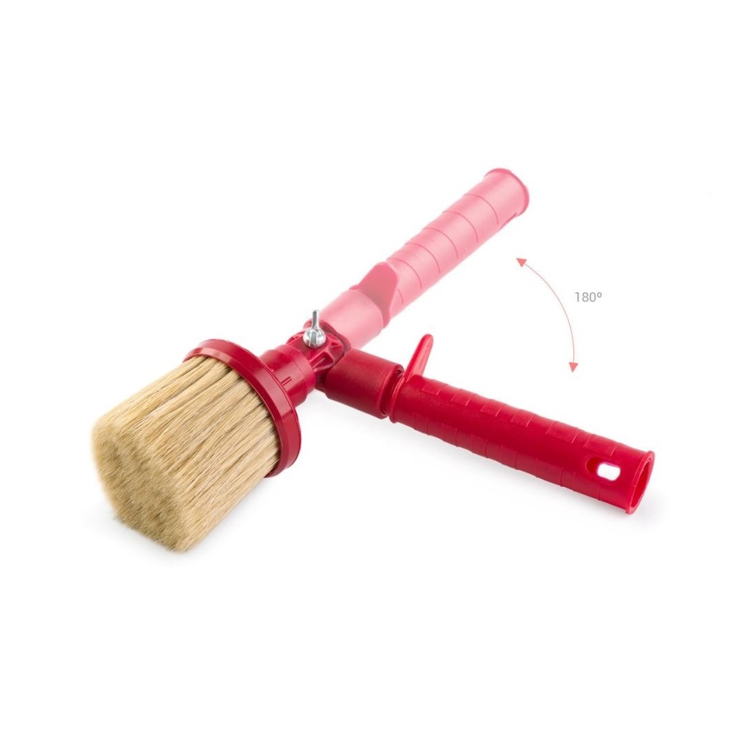 Изменение угла наклона на 180 градусов и осевое вращение основания кисти решают любые задачи маляров-профессионалов по покраске в труднодоступных местах.