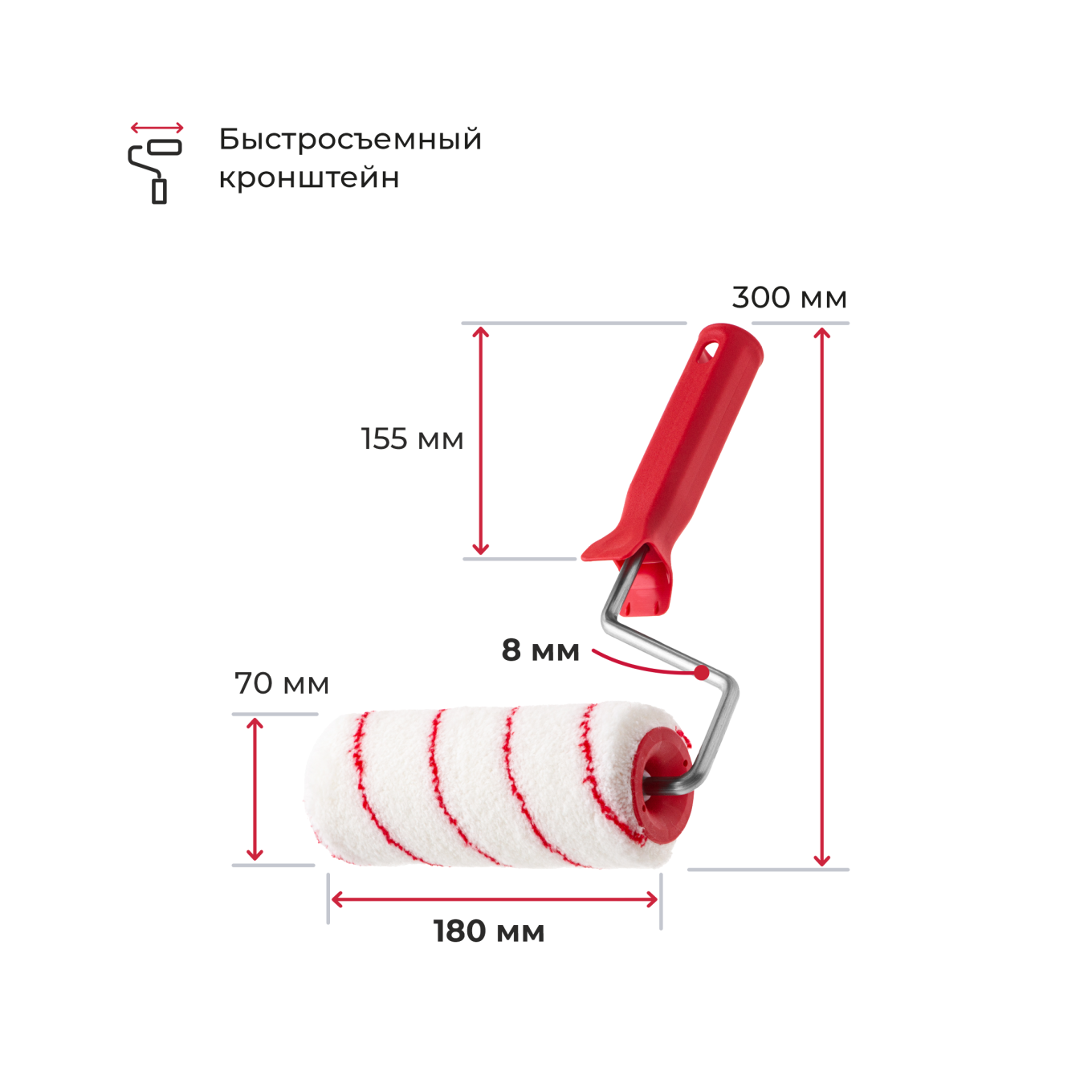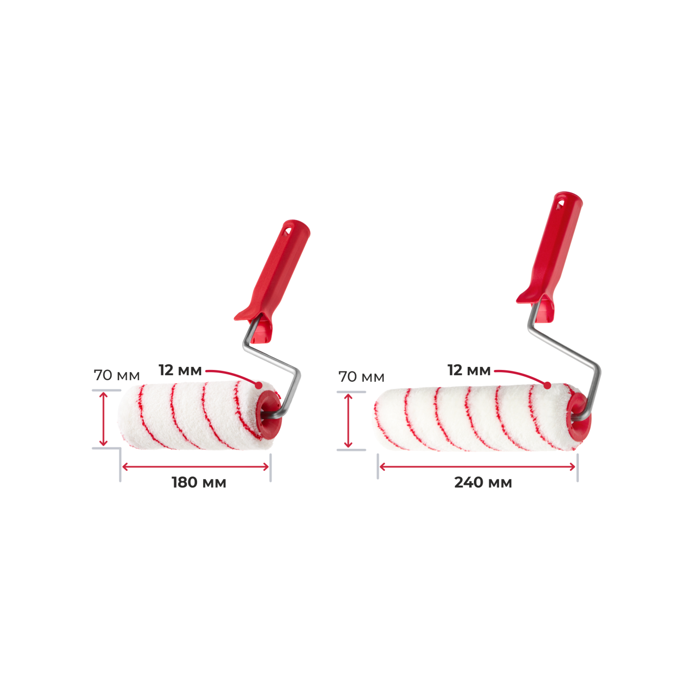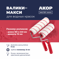 Валики для водных красок, ролики 180 и 240 мм, полиамид 12 мм, кронштейн 8 мм