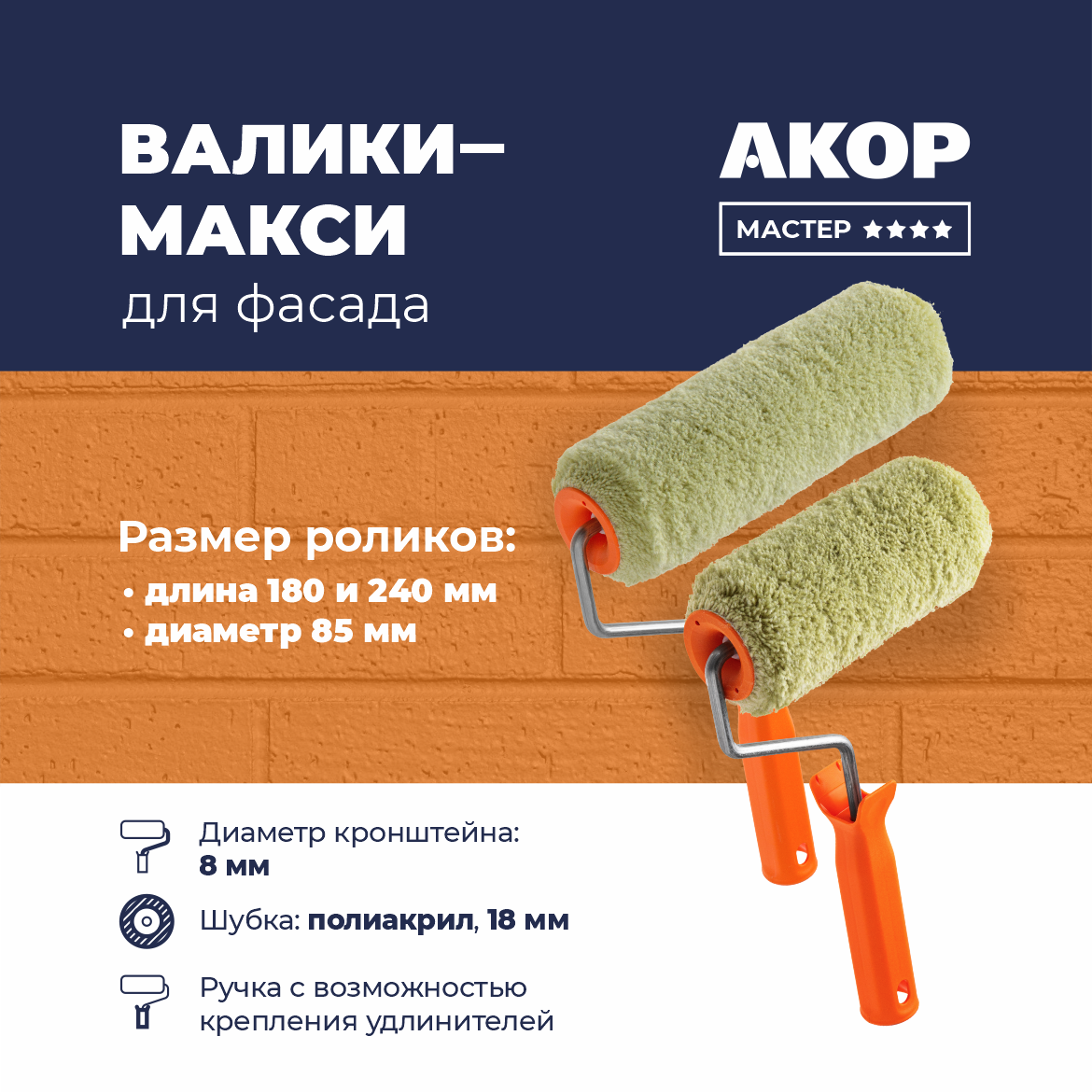 Валики для фасадных работ серии «Мастер» предназначены для работы на больших площадях и, как правило, на открытом воздухе. Кроме того, это работы с поверхностями различной шероховатости. Оптимальное соотношение состава, длины волокон, их структуры, плотности материала – гарантия качества от производителя АКОР. Данный валик протестирован с большинством типов «Фасадных» красок.
