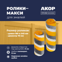 Ролики для эмалей, длина 180 и 240 мм, полиакрил 12 мм, под кронштейн 8 мм, диаметр 70 мм